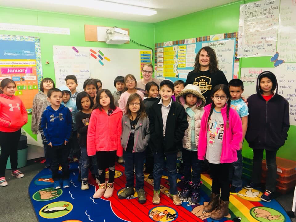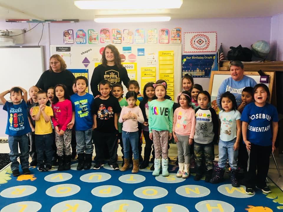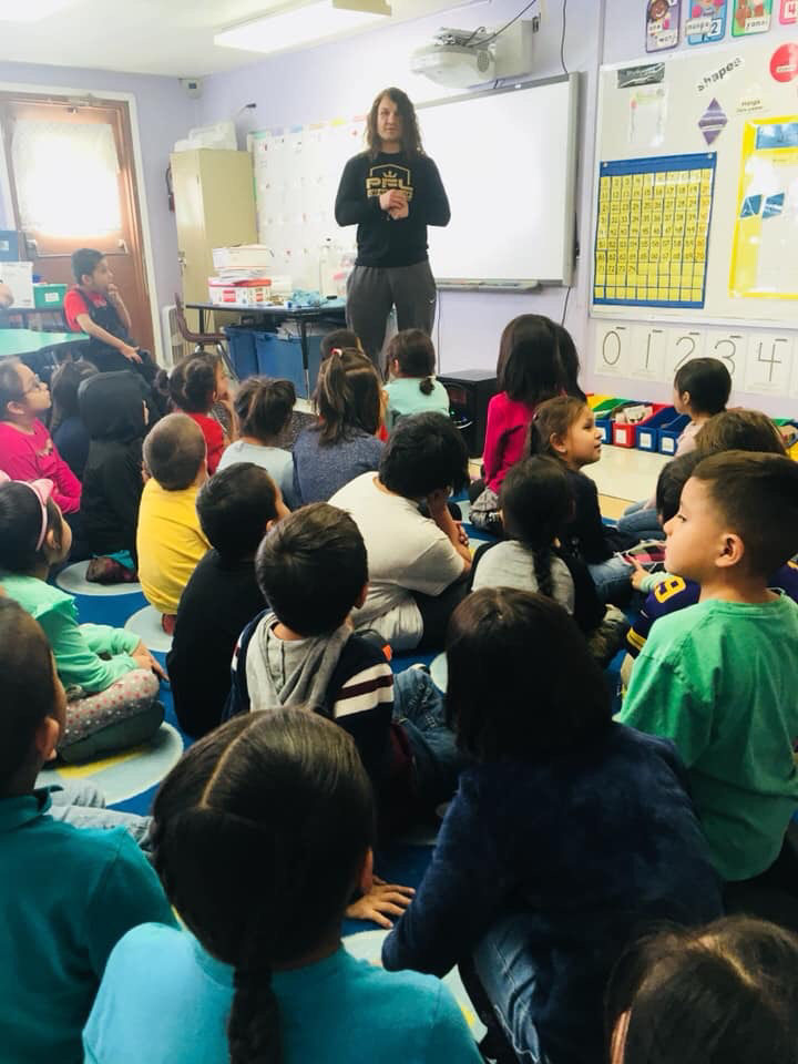 David "BullDawg" Michaud visits Rosebud Elementary and TCMS