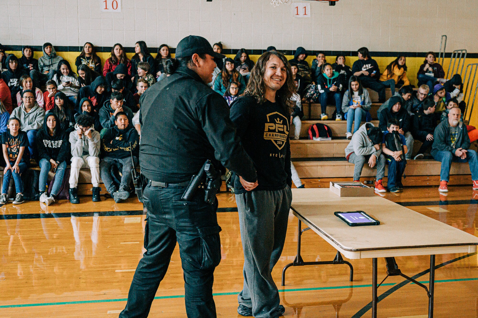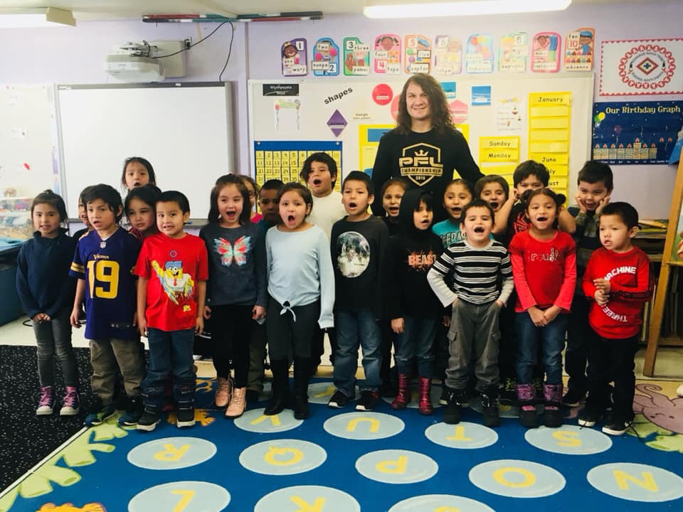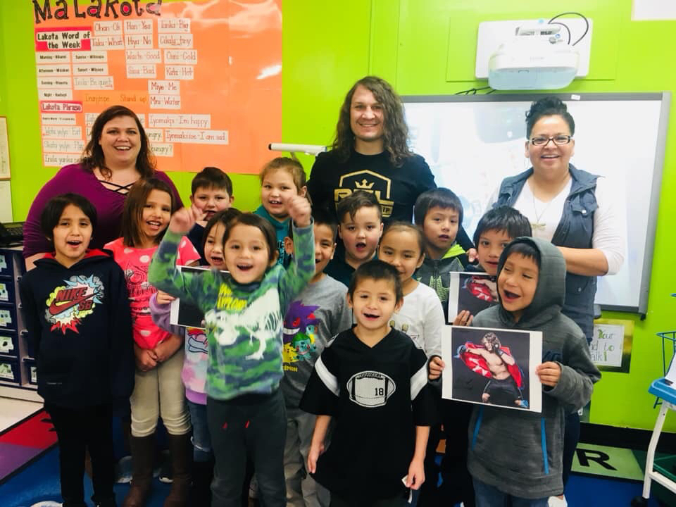 David "BullDawg" Michaud visits Rosebud Elementary and TCMS